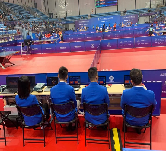 Relying on its solid professional skills and many years of sport-events service experiences, the Yongchuangheli team won the honor of becoming a technical service supplier for table tennis events of the National Games this year through over and over qualification trials and has provided complete technical support for this event, including Timing & Scoring, Result processing, Real-time displaying and so on. We arrived on the scene in advance to arrange routes, complete system debugging and software testing, and strictly cooperated with epidemic prevention work. The high-quality service provided for this event has been unanimously recognized and highly praised by relevant leaders.