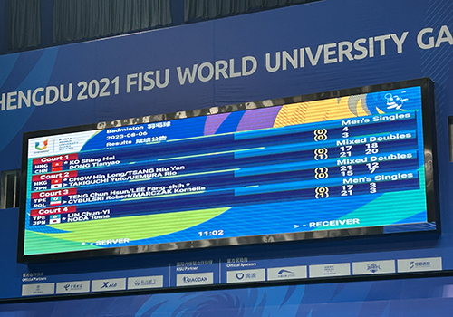 2023年第31屆世界大(dà)學生(shēng)夏季運動會(huì)羽毛球項目于7月30日-8月7日在雙流體(tǐ)育中心體(tǐ)育館舉行(xíng),永創合利團隊負責此次比賽的計(jì)時(shí)記分系統(T&S),公共大(dà)屏(PSCB),成績處理(lǐ)(VRS),技(jì)術(shù)統計(jì)(Statistics)。所有(yǒu)系統在實際運行(xíng)中做(zuò)到系統功能完備、運行(xíng)穩定,滿足運行(xíng)需求,滿足建設單位的技(jì)術(shù)服務要求,得(de)到主辦方及裁判方高(gāo)度好評。