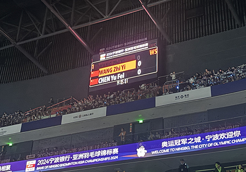 The 2024 Asian Badminton Championship was held at the Ningbo Olympic Sports Center from April 9 to April 14.The team of Yongchuang Heli was tasked with the Timing and scoring Service, Public Scoreboard, Venue Results System, Technical Statistics,and Games Information Diffusion System. Our System achieved complete functions and stable operation, which fully met the organizer's operational and technical service requirements and earned high acclaim from referees and organizers.